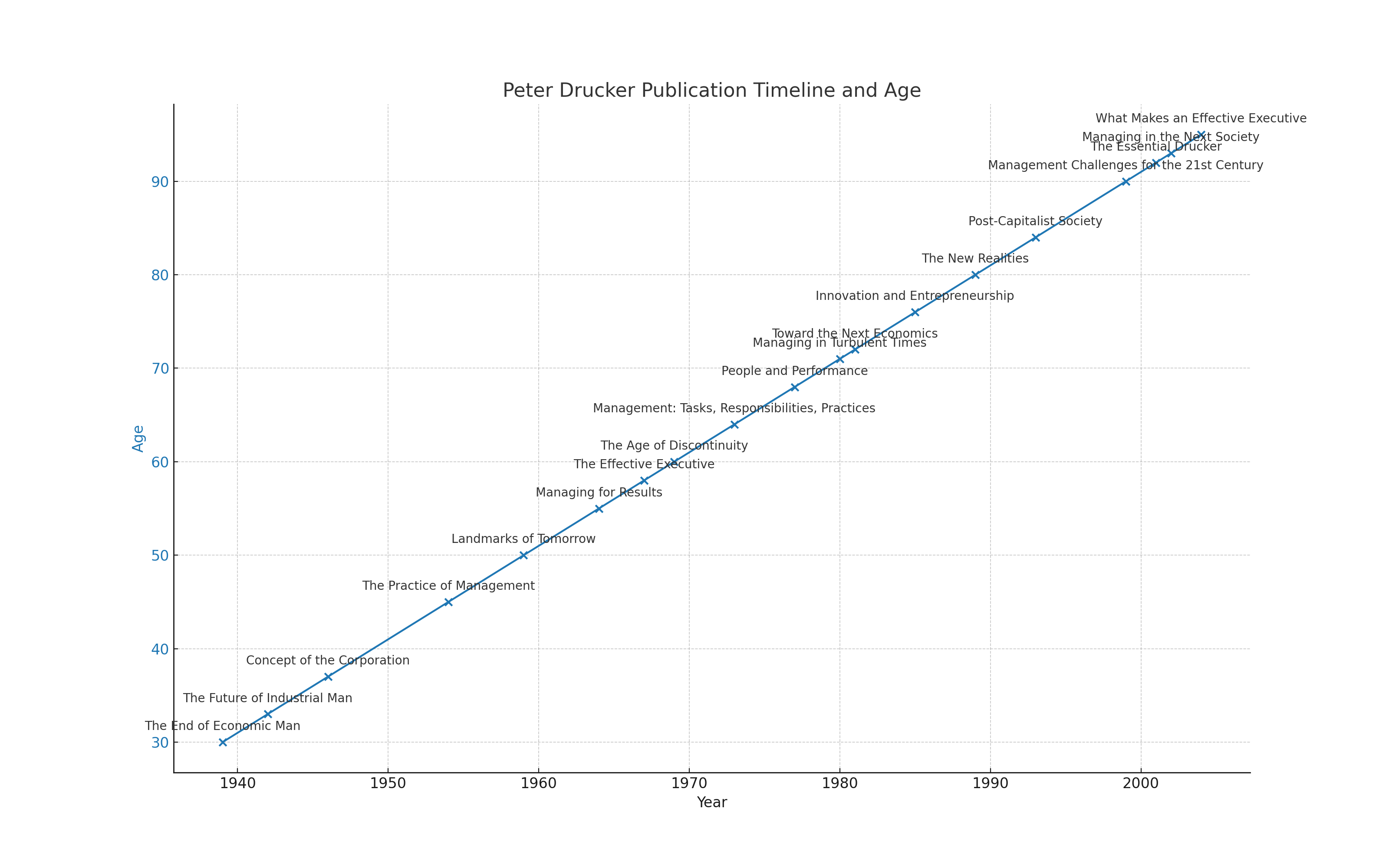 Let’s start with Drucker. Drucker was prolific in his books and HBR articles, plus creating the first Executive MBA in the US. All of this happened after he reached his 50s, and in fact 2/3rd of his work after 60. When he was 63 yrs of age, he started teaching Japanese art and history. That is called re-invention.