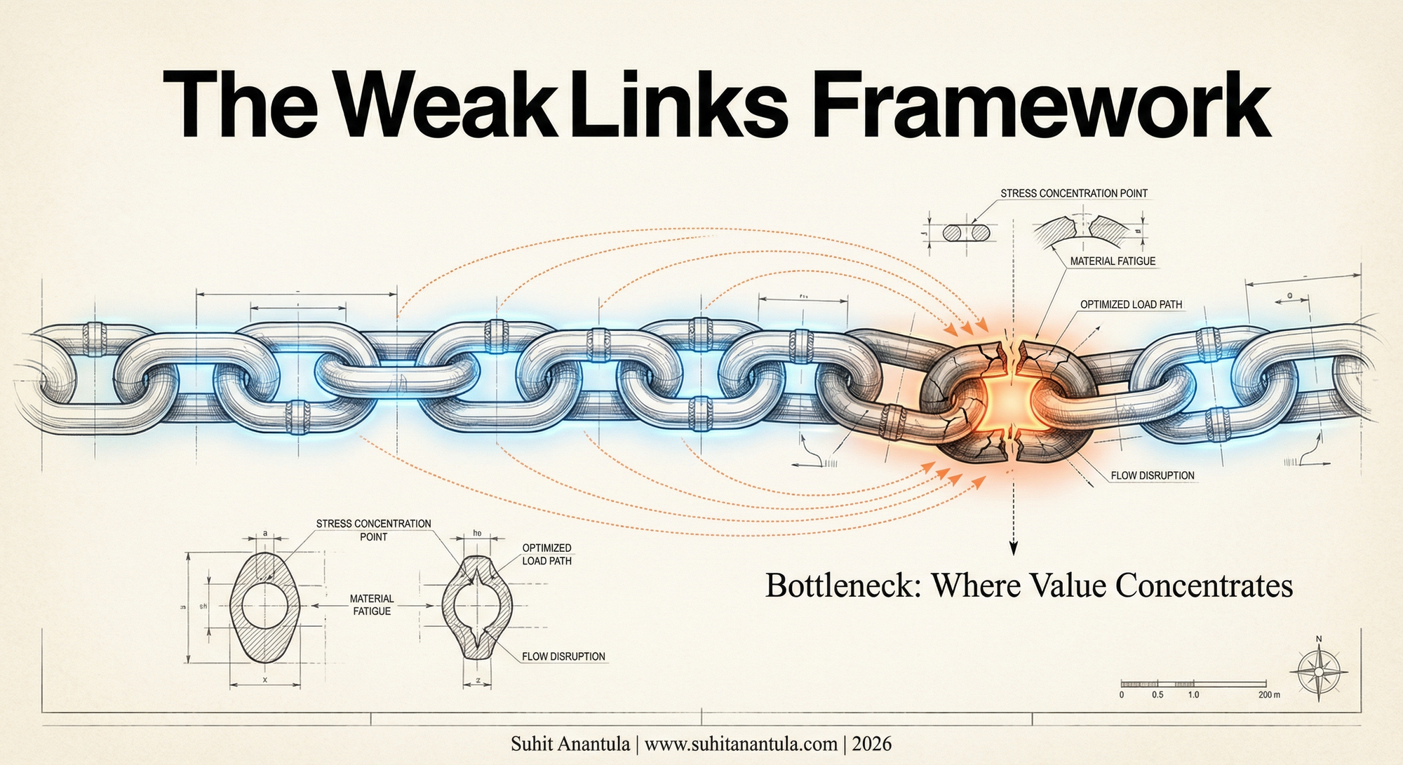 And in a weak-links world, the bottleneck is where all the value concentrates.